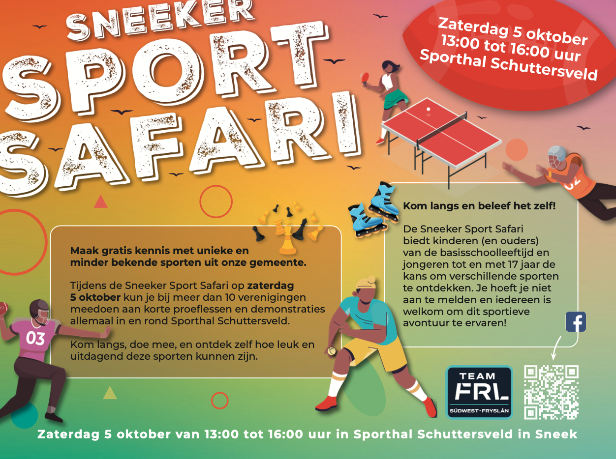 De Sneker Sport Safari is om 13:00 uur tot 16:00 uur in de sporthal Schuttersveld in Sneek. Beleef het zelf (of samen met je ouders). Je hoeft je niet aan te melden en iedereen is welkom om dit sportieve avontuur te ervaren!